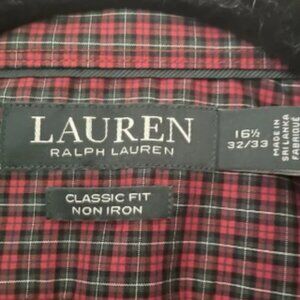 Lauren Ralph Lauren Men’s Shirt Size 16.5 Red Green Plaid Button Up Long Sleeve