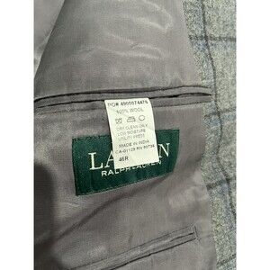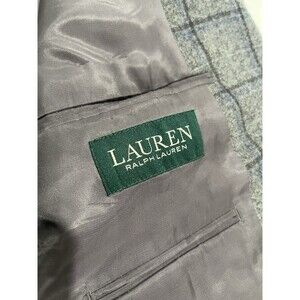 Lauren Ralph Lauren Men’s Wool Gray Windowpane Blazer Size 46R Elbow Patches