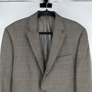 Excellent pre-owned condition. 100% wool. Size 42 Long. Measurements: length 33.5”, pit to pit under arms 22”, shoulder seam to shoulder seam 19”, sleeve (shoulder seam to hem) 25”.