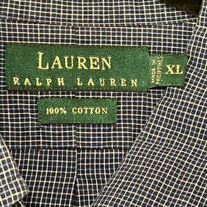 Lauren Ralph Lauren Mens XL Blue Check Short Sleeve Button-Up Shirt 100% Cotton