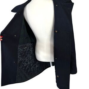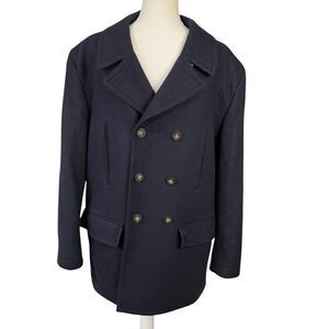 This peacoat offers a refined look ideal for cooler weather. Its double-breasted design and quality materials ensure warmth and durability, while the classic navy color offers timeless style. Tailored to a 40S, it suits those seeking a blend of elegance and practicality.