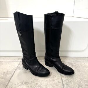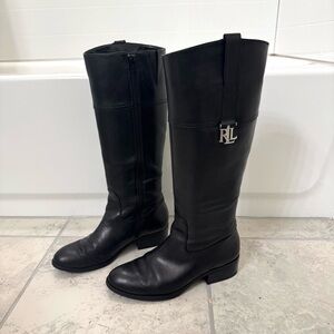 Lauren Ralph Lauren Merrie knee high boots in black. Size 7B. These boots are in great condition. They come with the boot shapers seen in the last picture. The original box is not available.