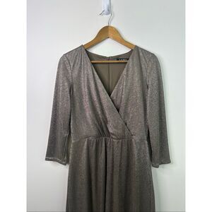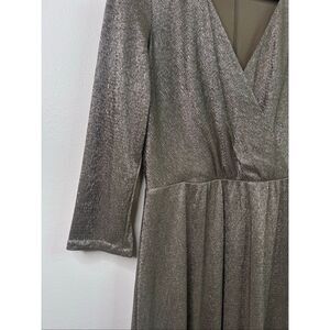 Lauren Ralph Lauren Metallic Gold Long Sleeve Faux Wrap Midi Dress Women Size 10