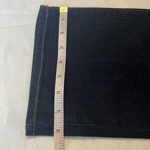 Sits at the natural waist. Slim through the hip and thigh with a straight leg