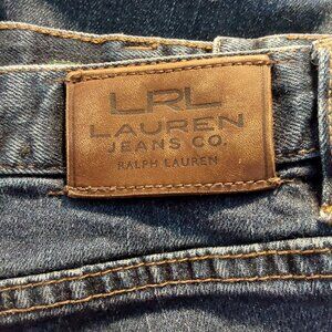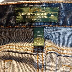Cropped, mid-rise, bootcut jeans from Lauren Ralph Lauren. Classic five-pocket styling. Zip and button close. Straight Leg. Dark blue wash. Condition: good, no flaws seen.