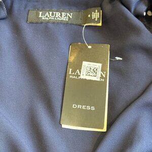 Lauren Ralph Lauren Midi Dress Polka Dot Navy White Chiffon V-Neck Preppy Sz 4