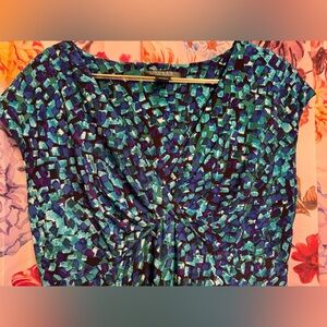 The Lauren Ralph Lauren Blue Geometric Dress in Women's Size 12 is a stylish and versatile garment perfect for various occasions such as weddings, parties, formal events, workwear, and business meetings. Made from a blend of polyester and spandex, this midi length dress features a v-neckline, short sleeves, and a pullover closure for ease of wear. The geometric pattern in a multicolor palette adds a touch of designer flair, making it a classic and colorful choice for the spring, summer, and fall seasons. With its sheath style and shoulder pads, this dress is sure to make a statement in any wardrobe.