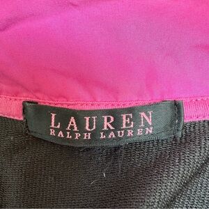 Lauren Ralph Lauren Mixed Media Black Jacket Pink Collar Quilted Front Knit Back