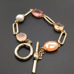 *Description: Beautiful Lauren Ralph Lauren mixed stone and cultured freshwater pearl chain link flex bracelet in gold tone. Open back stones. Toggle Clasp. Looks great! This would be a great addition to your jewelry collection or make a great gift!