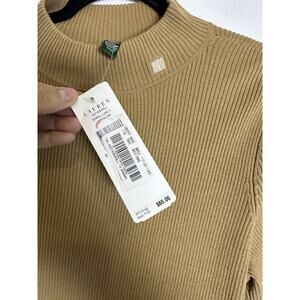 This super stretchy Women's Plus Size 2x Lauren Ralph Lauren Mock Neck Ribbed Knit khaki beige