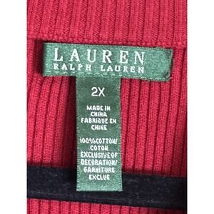 Lauren Ralph Lauren Mock Neck Ribbed Knit Red Logo Sweater Women’s Plus Size 2x