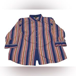 Lauren Ralph Lauren Multi Colored Striped 3/4 Sleeve Button Down 1X Preppy Work
