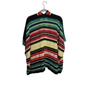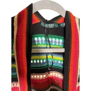 Lauren Ralph Lauren Multicolor Stripe Knit Open Front Poncho L/XL Acrylic & Cott
