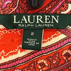 Lauren Ralph Lauren NEW Red Satin Paisley Midi Dress Size 2 Button Neckline