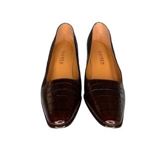 Lauren Ralph Lauren NWOB Cocodrile Women High Heels Brown Sz 10 B Made …