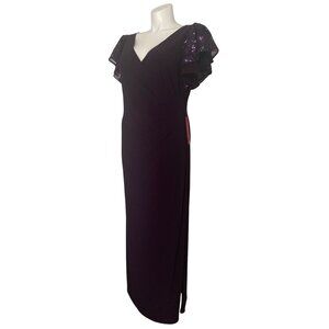 Lauren Ralph Lauren NWT $190 Purple Flutter Sleeve Sequin Accent Gown Size 18