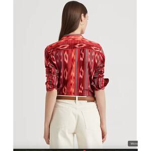 Lauren Ralph Lauren NWT Geo-Striped Cotton Voile Ikat Shirt M Boho Button Down
