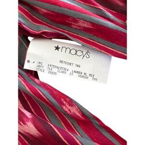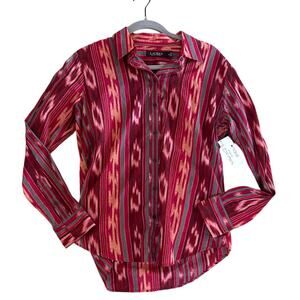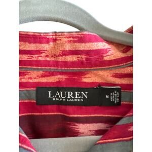 lauren ralph lauren shirt, macy’s blouse, cotton voile, striped shirt, red pink top, boho button down, resort wear, sheer blouse, preppy fall top, coastal chic, lightweight travel shirt, NWT, geo print blouse, women's large, festival, western