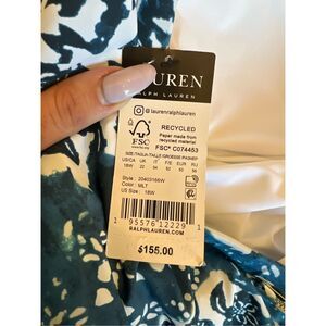 Lauren Ralph Lauren NWT Plus Size Bandeau Halter One- Piece Swimsuit - Indigo Patchwork 18W