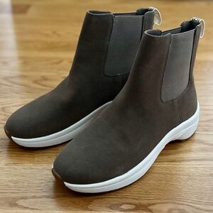 Brand new with tags. I don't have the box though. Lauren Ralph Lauren Women's Rylee Chelsea Slip-on Sneaker Fashion Boot. Grey Suede Pull-Ons with a rubber sneaker-like sole. They are considered Grey--I even double-checked my receipt, and they are "Grey" but to me they look more like a Medium Brown. Size 8.