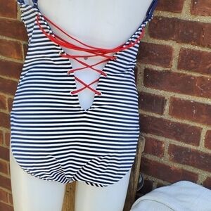 Lauren Ralph Lauren Nautical Plus Size stripe swimsuit 14