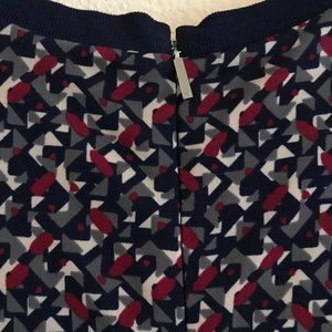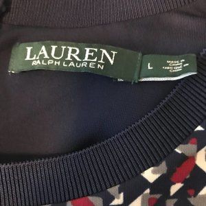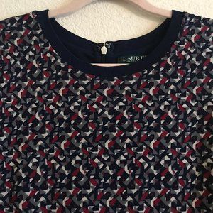 Lauren Ralph Lauren Navy Blue Abstract Geometric Long Sleeve Shift Career Dress