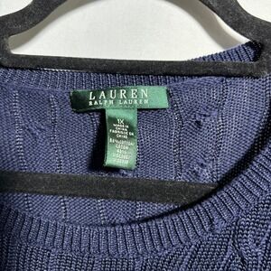 Lauren Ralph Lauren Navy Blue Cable Knit Sweater Gold Button Womens 1X Preppy RL