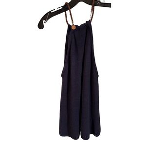 Excellent condition. Women’s Lauren Ralph Lauren halter / flowing tank top. High neck with braided leather strap, navy blue, size large. See photos for measurements