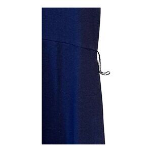 Elevate your wardrobe with this timeless Lauren Ralph Lauren midi dress in deep navy blue. Likely from the early to mid-2010s, this piece combines classic tailoring with soft, stretch-enhanced comfort. It features a scoop neckline, long sleeves, a fitted waist seam, and six decorative gold-tone buttons down the skirt for a refined, polished look.