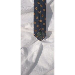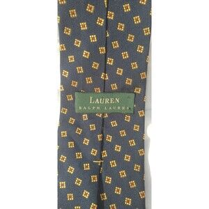 Lauren Ralph Lauren Navy Blue Men's Tie W/Yellow Geometric Jacquard Made In USA