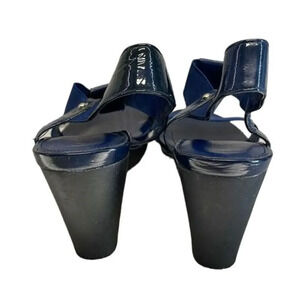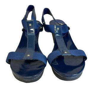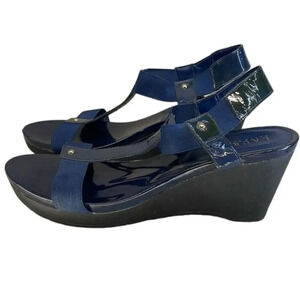 Lauren Ralph Lauren Navy Blue Patent Leather Strappy Wedges Size 10B