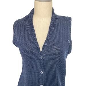 Lauren Ralph Lauren Navy Blue Sweater Vest Button Front Cotton Small