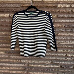 Lauren Ralph Lauren Navy Blue White Nautical Stripe Silk Blend Sweater Small P