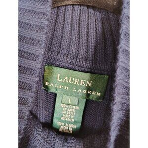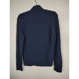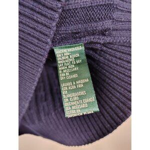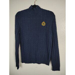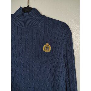 Lauren Ralph Lauren Navy Cable Knit Sweater Women Large Crest Preppy Turtleneck
