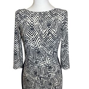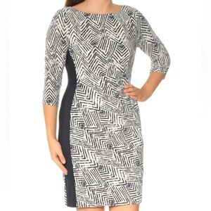 Lauren Ralph Lauren Navy Chevron Colorblock Ruched Dress Career Size 4 Event