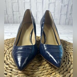 Lauren Ralph Lauren Navy Croc-Patterned Heels. Size 8B