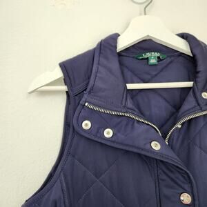 lauren ralph lauren quilted vest navy blue medium sleeveless zip up collared layering preppy classic equestrian fall winter casual minimalist womens closet capsule outerwear 90s y2k retro core streetwear