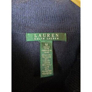 Lauren Ralph Lauren Navy Knit Sweater W/ Buttoned Cuffs & Drape Neck Size M