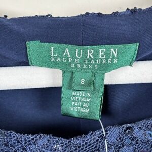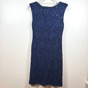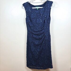 Lauren Ralph Lauren Navy Lace Sequin Sheath Dress Women's 8 Gathered Waist NWT