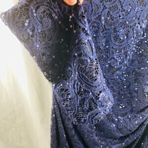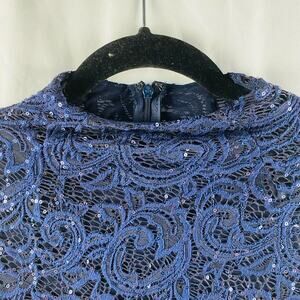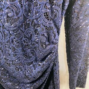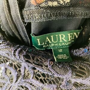 Lauren Ralph Lauren Navy Mock Neck Lace Sequined Long Sleeve Ruched Dress 12
