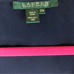 Lauren Ralph Lauren Navy Silk Sheer long sleeve Ruffle Trim blouse size 22W
