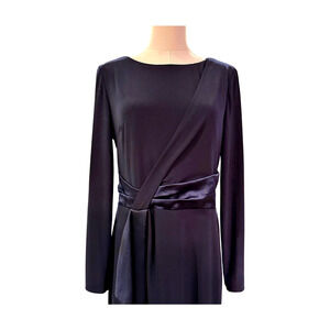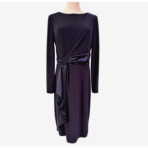 Lauren Ralph Lauren Size 8 Navy Stretch Jersey Satin Trim Lined Cocktail Dress