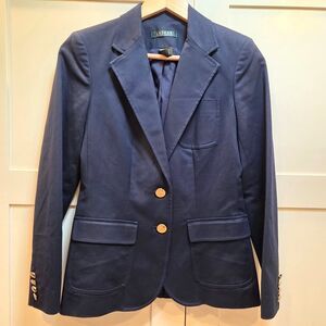 Lauren Ralph Lauren Navy Women's Blazer Gold Buttons Cotton Stretch Tailored 2