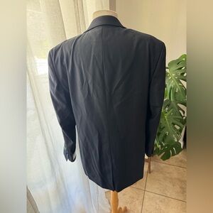 Features: Notched lapel, flap pockets, double-vented back, fully lined, interior pockets