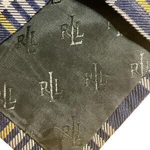 Lauren Ralph Lauren Navy & Yellow Plaid Silk Tie For Men