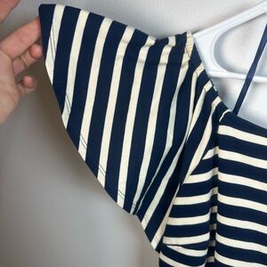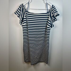 Lauren Ralph Lauren Navy and White Striped Sheath Midi Dress XL off shoulder