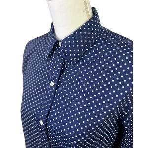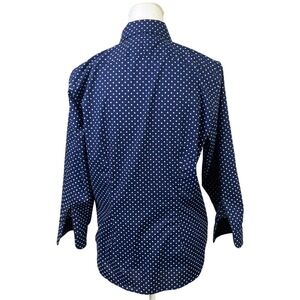 Lauren Ralph Lauren Non Iron Preppy Polka Dot Button Down Shirt Navy Blue Medium
