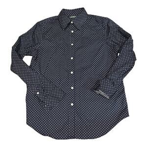 Lauren Ralph Lauren Non Iron navy white Polka Dot cotton Button Up size medium