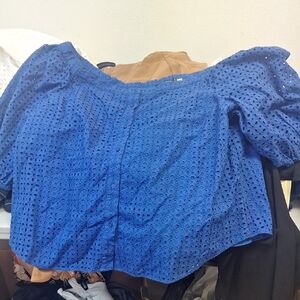 Elevate your style with this elegant white off-shoulder eyelet top. Perfect for any occasion, this top offers a chic and breezy look. Available in 2 colors white and blue white Medium and 3xl. blue 3 3xl