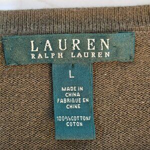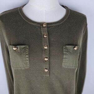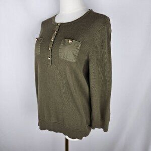 Lauren Ralph Lauren Olive Green Henley Sweater Gold Buttons Sz Large